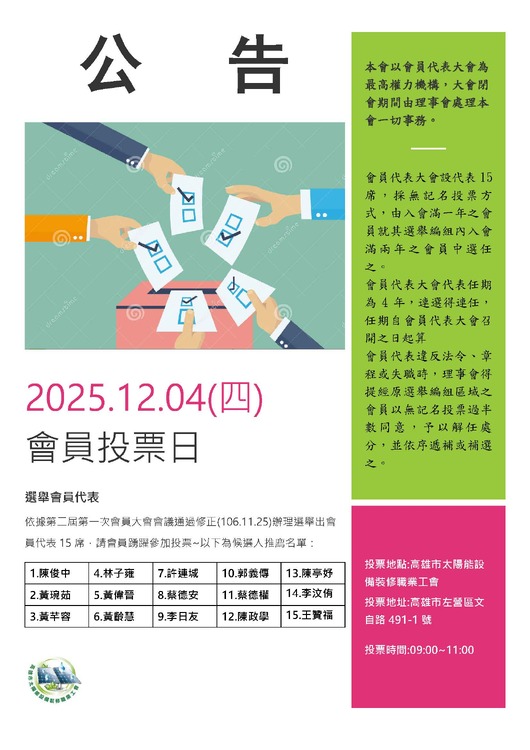 公告~會員代表選舉