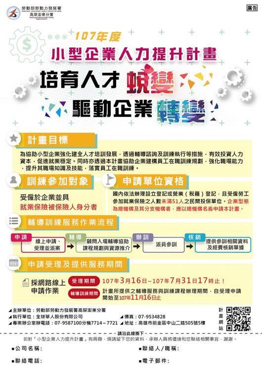 為協助小型企業強化健全人才培訓發展,透過輔導諮詢及訓練執行等措施,