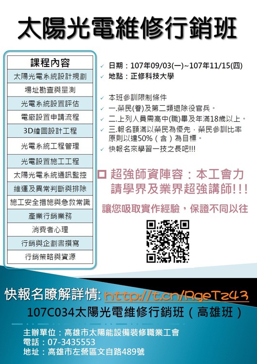 太陽光電維修行銷班(高雄班)