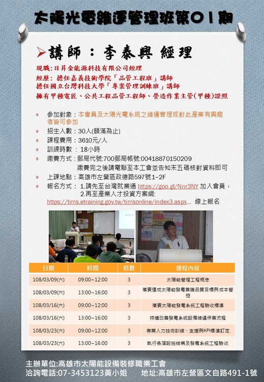 【課程名稱】太陽光電維運管理班第01期