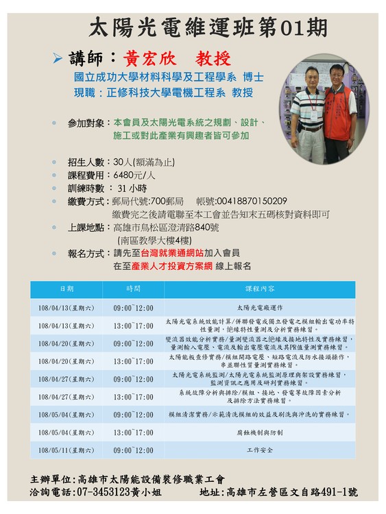 【課程地點】高雄市鳥松區澄清路840號(南區教學大樓4樓)