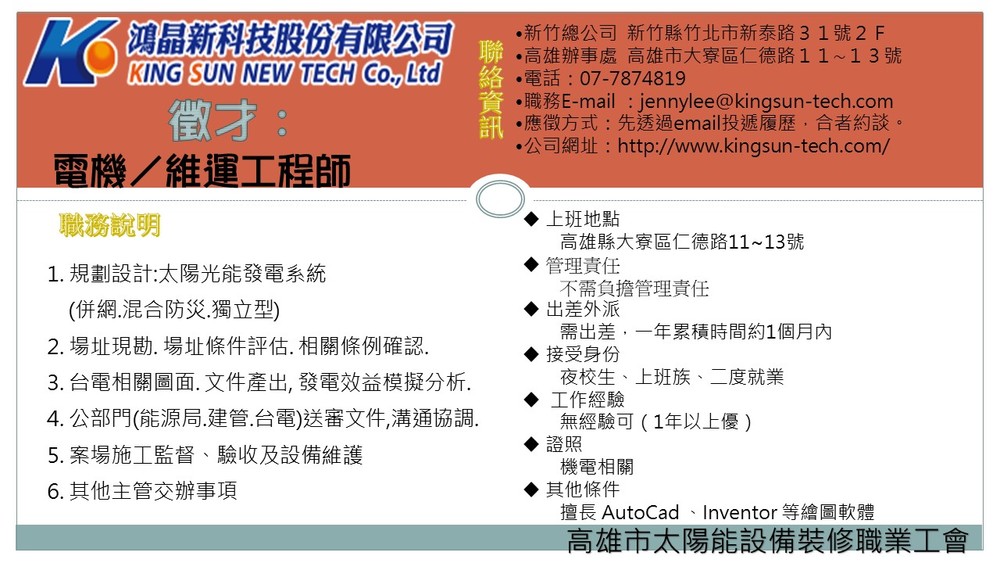 Copyright © https://www.sunlight.org.tw 高雄市太陽能設備裝修職業工會 版權所有