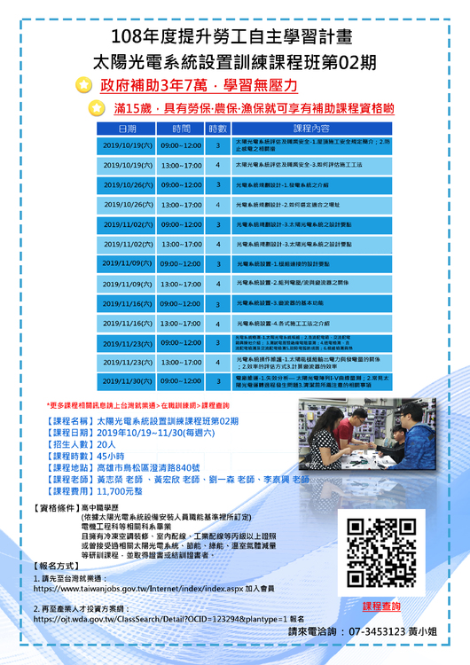 【課程名稱】太陽光電系統設置訓練課程班第02期