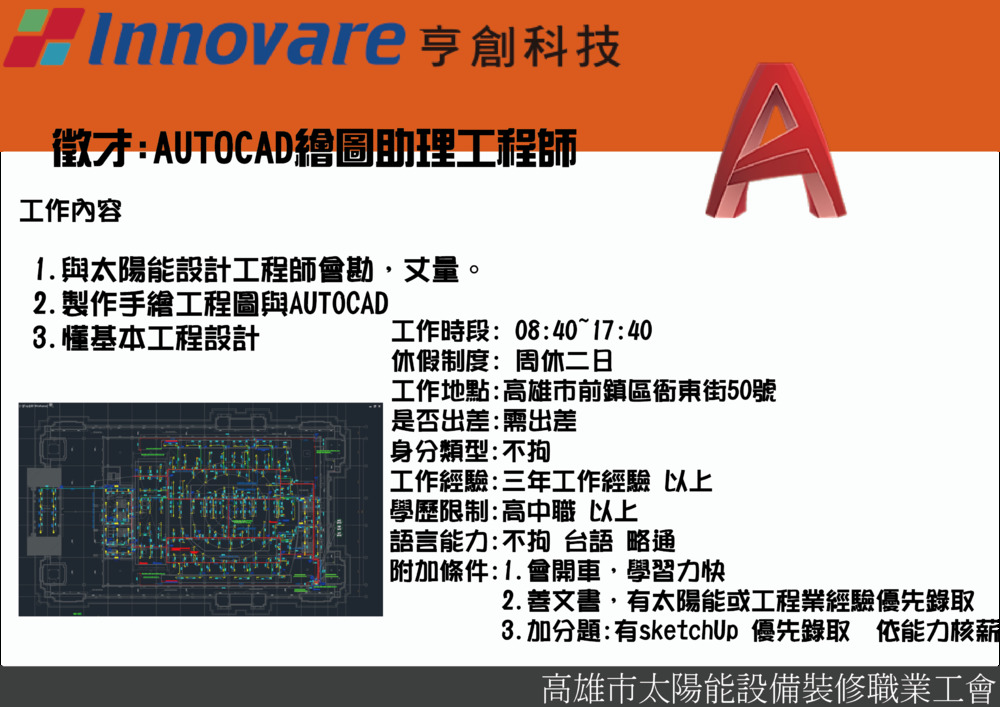附加條件:1.會開車,學習力快 2.善文書,有太陽能或工程業經驗優先錄取