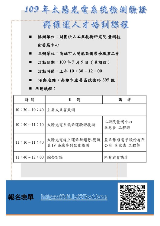 109年太陽光電系統檢測驗證與維運人才培訓課程