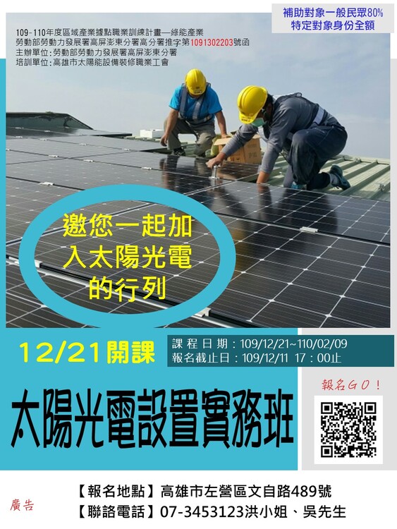 【訓練單位】高雄市太陽能設備裝修職業工會