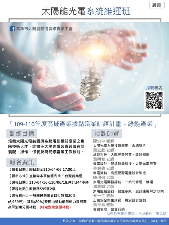 【訓練單位】高雄市太陽能設備裝修職業工會