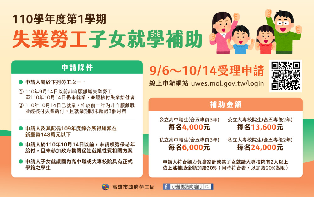110學年度第1學期失業勞工子女就學補助
