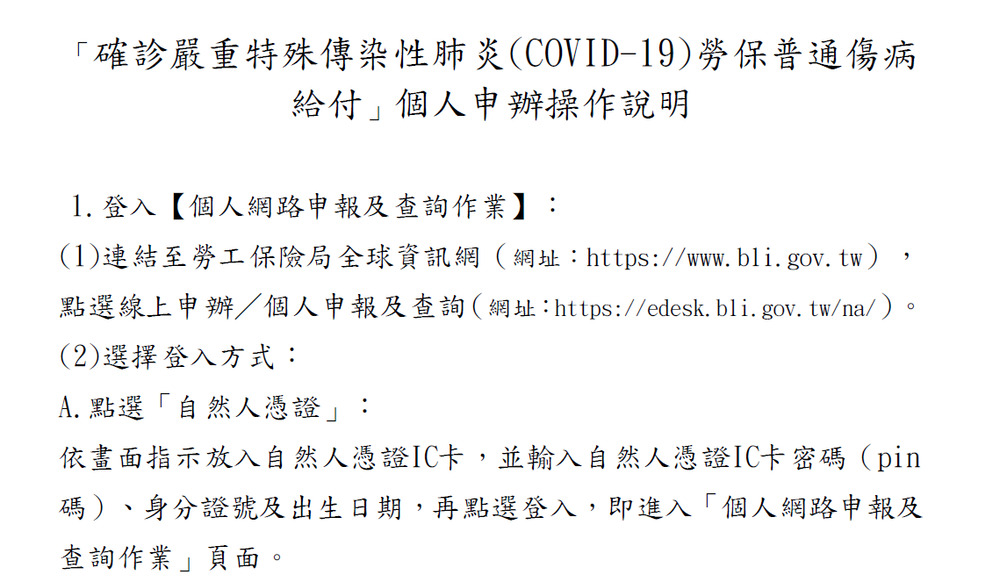 確診COVID-19申請勞保普通傷病給付,自111/7/1起可線上辦理